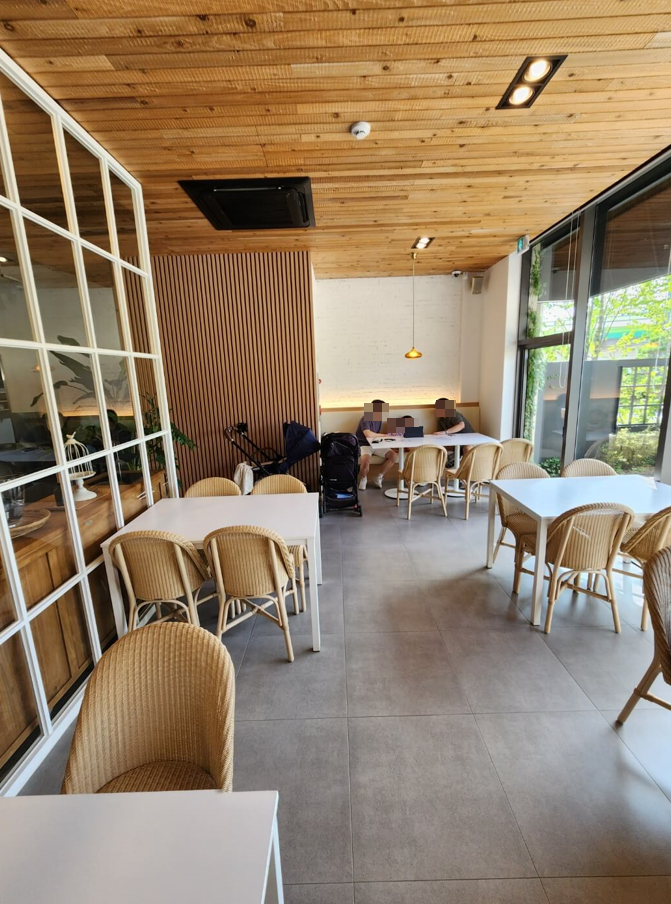 1층 실내자리 말고도 2층도 자리가 있는데 프라이빗한 느낌이 나는 공간도 있었고, 깔끔하고 조용해서 유모차를 가져가지 않았다면 2층으로 가도 괜찮았을 것 같았습니다.