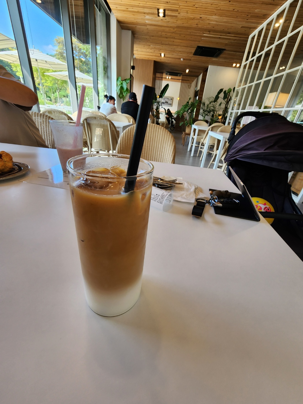 더운 여름날씨라서 실외 공간에서 오래 머물지는 못했지만 아이랑 실내에서 음료를 마시다가 아이가 나가서 뛰고 싶다고 하면 중간중간 나가서 뛰어놀고 들어올 수 있는 공간이었습니다.