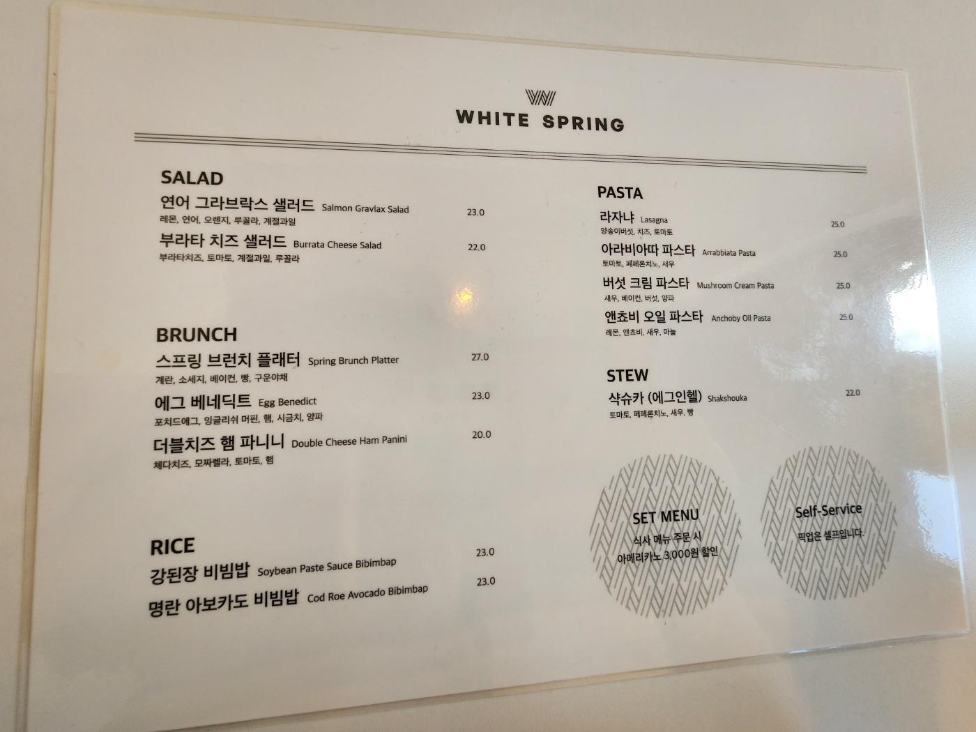 메뉴는 커피, 음료, 파스타, 비빔밥 등 정말 다양해서 식사를 해결하기도 좋습니다. 주방장이 호텔 출신의 셰프라고 하니 맛은 보장되어 있을 것 같아요.