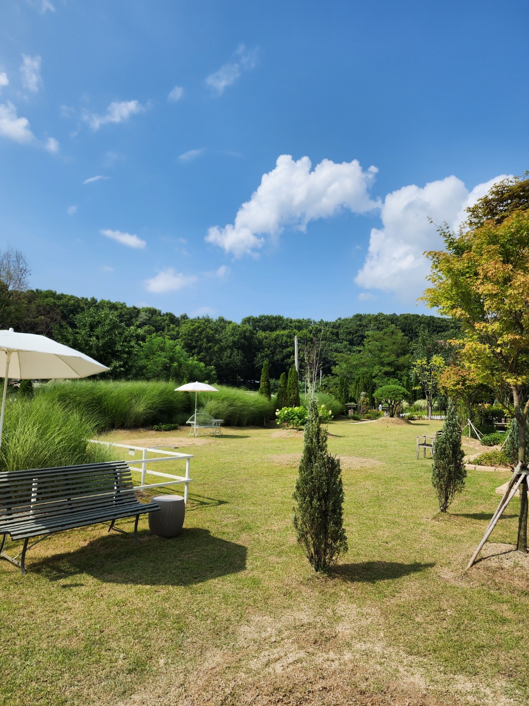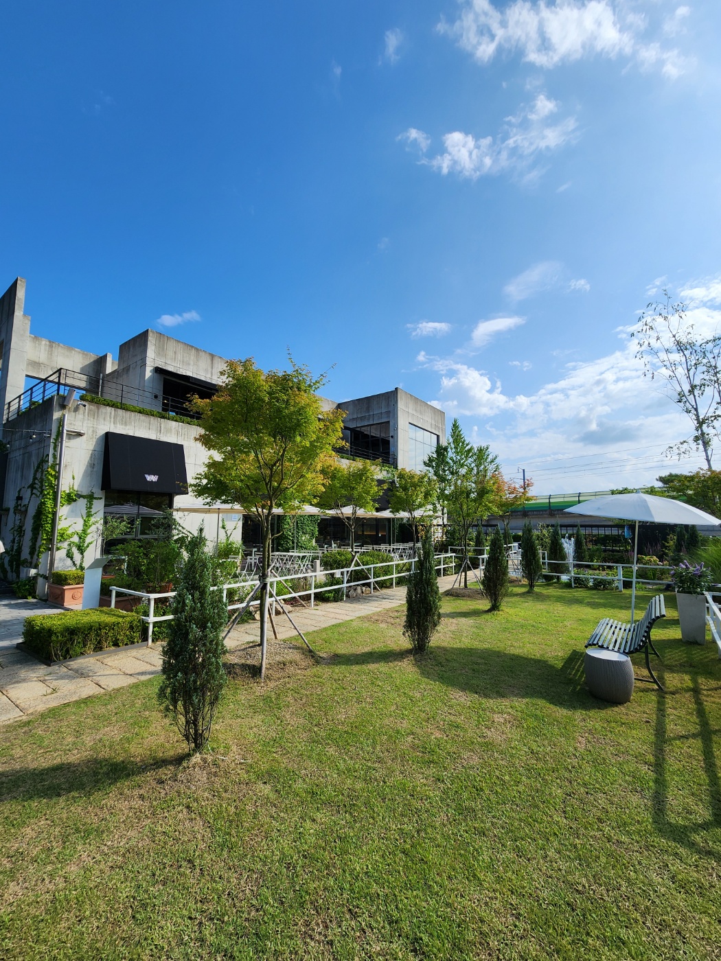 중간에 여러 스팟에 테이블과 의자가 배치되어 있어서 날씨가 좀 선선해지면 야외 카페, 브런치 명소로 너무 좋을 것 같다고 생각했습니다.